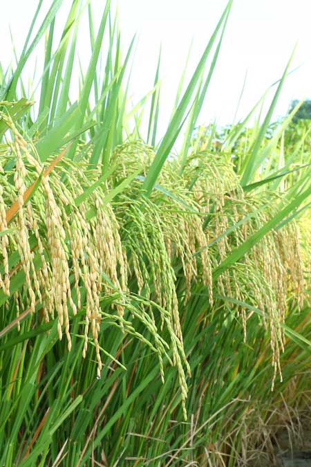 Drain out water from the field when grains in the lowest portion of the panicle are in the dough stage (about 20 days from 50% flowering). Allow the grains to harden. Harvest when 80-85% of the grains turn golden yellow and stalks remain green to avoid grain shedding. Thresh as early as possible preferably a day after harvest. Dry gradually under shade and not direct drying under the sun until the moisture content is brought down to 12-14 per cent, which ensures better milling quality and storage.